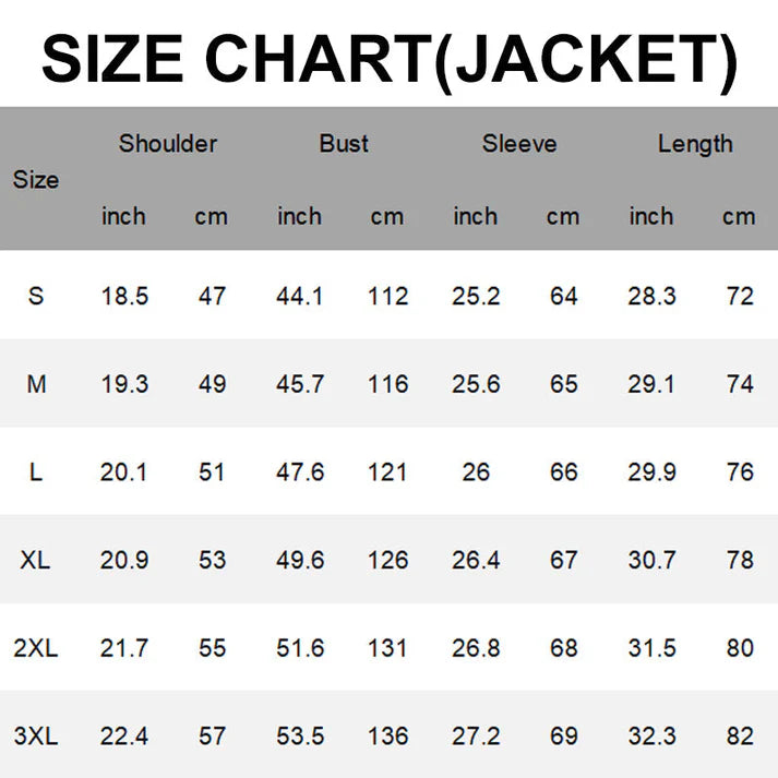 Package Includes: 1*Men’s Retro Jacket & Cargo Pants 2-Piece Set