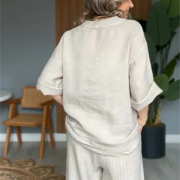 - Package includes: 1 × Women's two-piece cotton-linen casual set