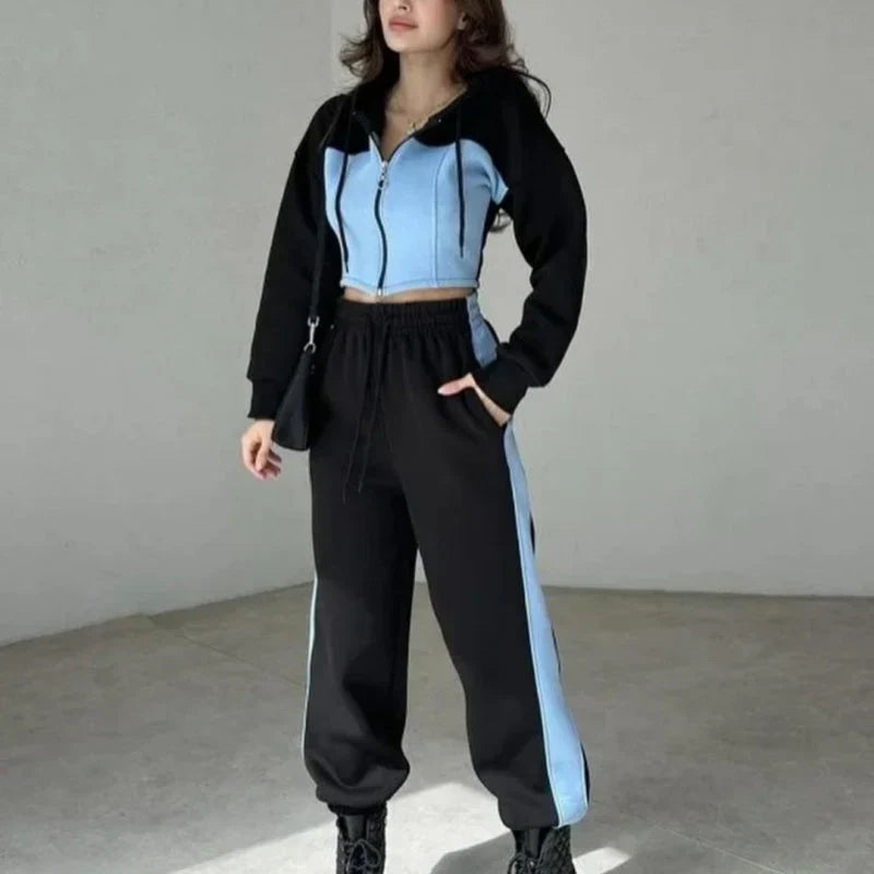 Women’s Trendy Color Block Jacket & Pants 2-Piece Set