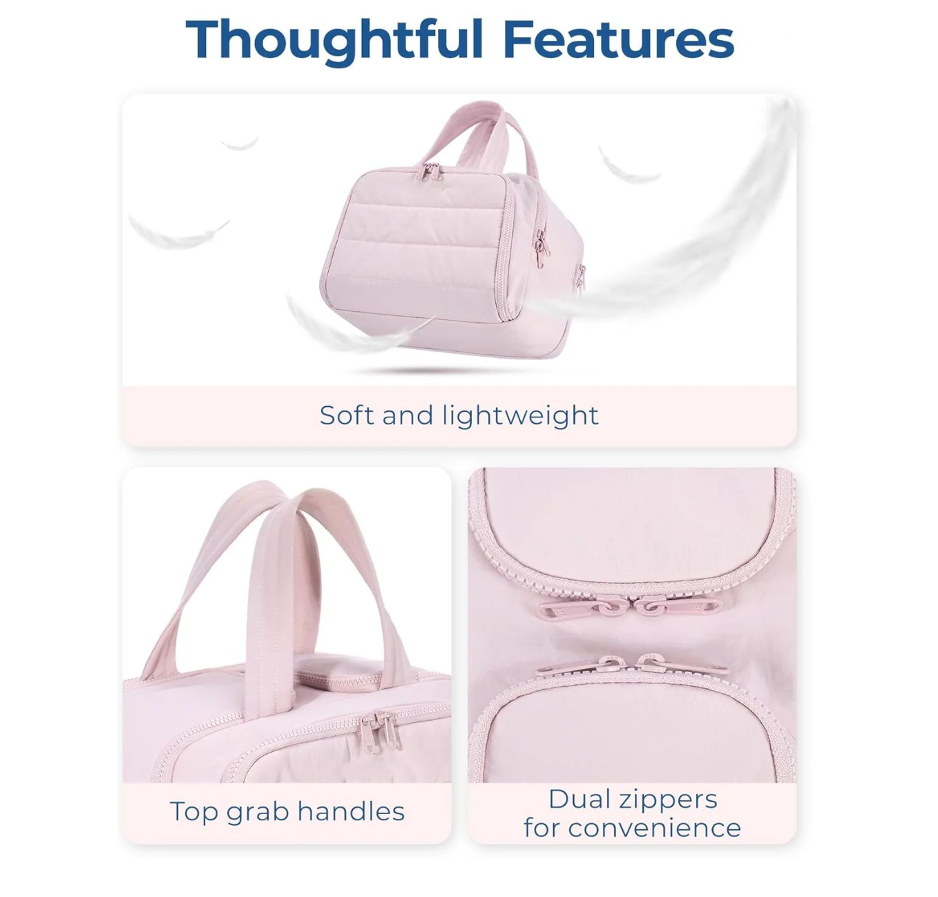 🌟Ultra Light & Soft Materials: Made of soft and luxurious fabric. This puffer toiletry bag feels like cotton candy, giving people a relaxed and comfortable atmosphere.