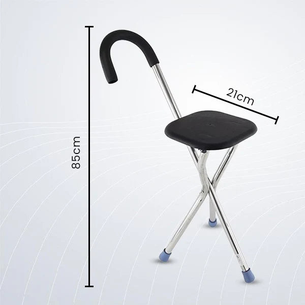 ComfortWalk combines the functionality of walking with the convenience of a folding seat. The three-legged stand provides stable support when used as a cane and a comfortable seat when you need a rest. The perfect solution for everyday errands, travel or long waits.
