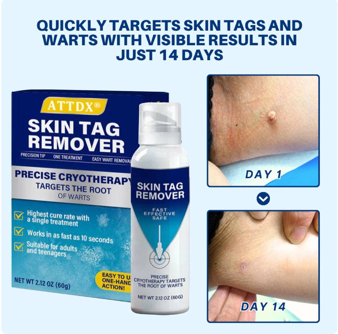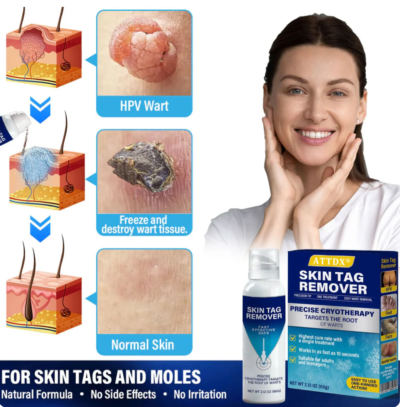 ATTDX® TagRecede Cryo Treatment Spray uses precision cryo-technology to freeze abnormal tissue at the root—while protecting your healthy skin.